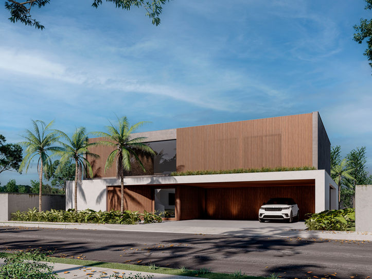 Com quatro suítes, o projeto foi desenhado em um sobrado de linhas puras e horizontais, criando uma composição elegante e marcante. A volumetria simples e sofisticada valoriza o uso de madeira natural e pinturas claras, que refletem a luz e realçam a sensação de amplitude e tranquilidade.