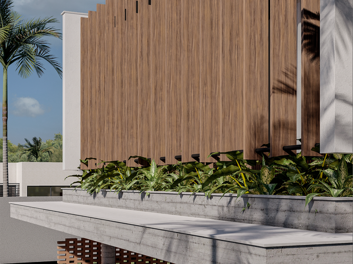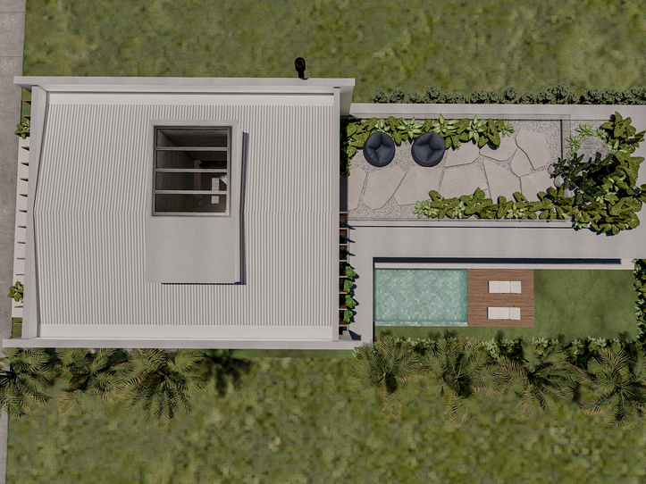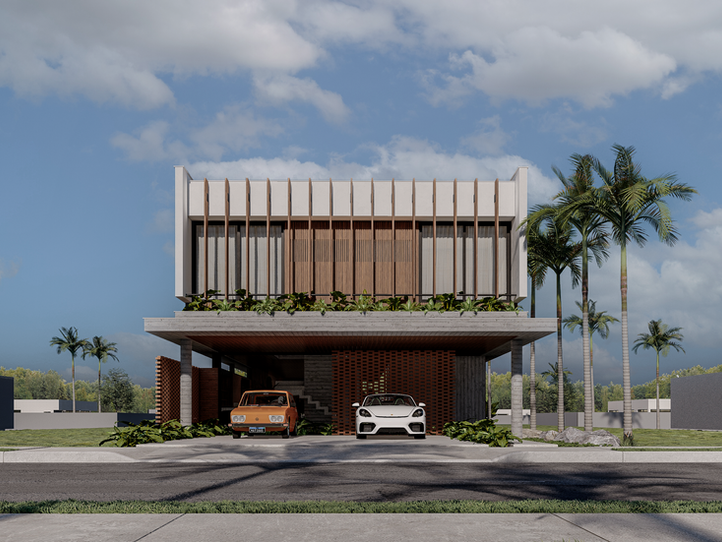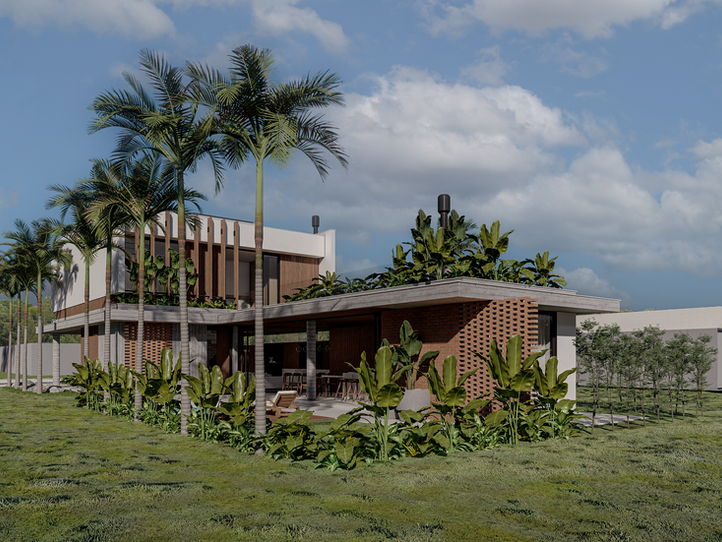 A área íntima é composta por suítes bem distribuídas, oferecendo privacidade e comodidade aos moradores. O uso de materiais naturais, como madeira e pedra, grandes aberturas envidraçadas e coberturas leves garantem eficiência térmica e estética contemporânea.